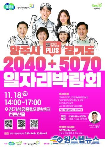 원스텝뉴스 이병희 기자 | 양주시가 경기도 및 경기도일자리재단과 함께 오는 11월 18일, 경기섬유종합지원센터 컨벤션홀에서 '양주시+경기도 2040+5070 일자리박람회'를 개최한다.