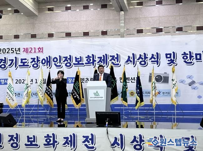 원스텝뉴스 천규영 기자 | 경기도장애인정보화협회는10월29일 오전11시 렛츠런파크 서울 컨벤션홀 에서‘제21회 경기도장애인정보화제전 및 한마음축제’를 성황리에 개최했다. 이번 행사는 경기도청, 경기도의회, 경기도교육청의 후원으로 열렸으며, 협회 산하18개 시·군지회 회원과 장애인 참가자, 자원봉사자 등1,000여명이 참석해 정보와 문화가 어우러진 포용의 축제를 펼쳤다.