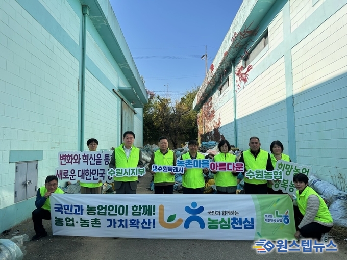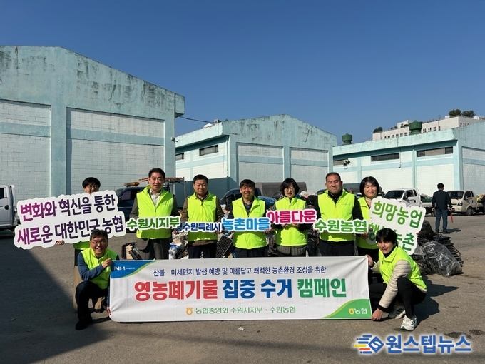 농협중앙회 수원시지부, 수원농협, 수원시 농업기술센터 직원들은 5일 수원농협 경제사업장에서 수원농협 조합원들을 대상으로 깨끗하고 아름다운 농촌 조성을 위한 영농폐기물 수거 캠페인을 실시했다.