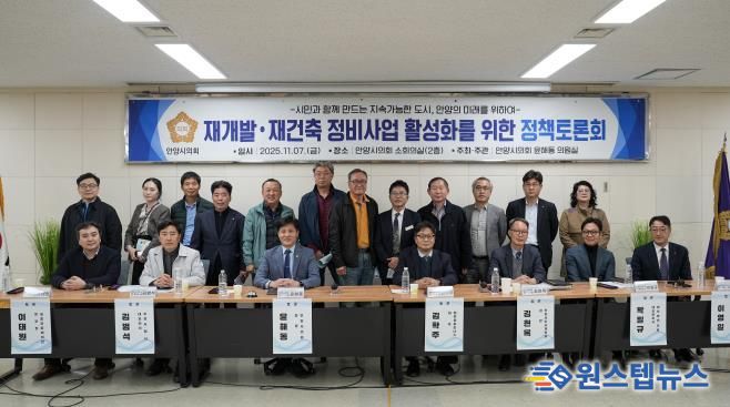 원스텝뉴스 이병희 기자 | 안양시의회 윤해동 의원(더불어민주당, 관양·달안·인덕원·부림동)은 11월 7일 시의회 소회의실에서 ‘재개발·재건축 정비사업 활성화를 위한 정책토론회’를 개최했다.
