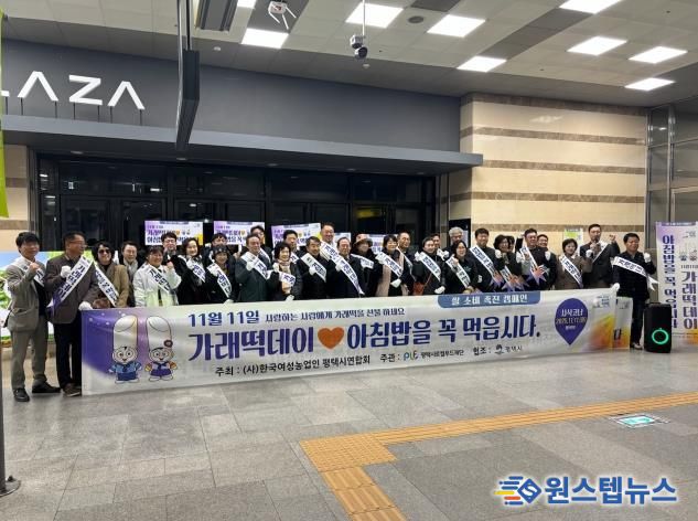원스텝뉴스 이병희 기자 | 평택시는 지난 11일 농업인의 날을 맞아 평택역에서 ‘가래떡 데이 캠페인’을 통해 출근길 따뜻한 나눔의 시간을 가졌다.