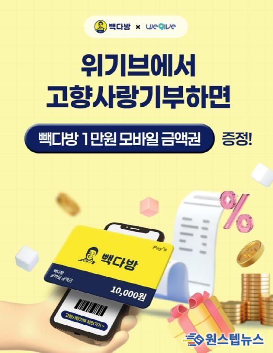 이번 이벤트는 고향사랑기부제에 대한 관심과 참여를 높이기 위해 마련됐으며, 기부자는 빽다방 모바일 금액권 1만 원권 외에도 연말정산 세액공제(10만 원까지 100%, 초과분 16.5%)와 기부금액의 30%에 해당하는 지역특산물 답례품을 함께 받을 수 있다. 즉, 한 번의 기부로 세액공제·특산물·빽다방 1만 원 모바일 금액권까지 누릴 수 있는 3중 혜택이 제공되는 셈이다.