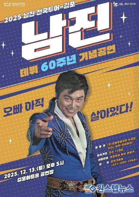 원스텝뉴스 천규영 기자 | (재)김포문화재단(대표이사 이계현)은 오는 12월 13일 김포아트홀에서 2025 김포아트홀 송년 기획공연 '2025 남진 전국투어-김포'를 개최한다고 밝혔다.