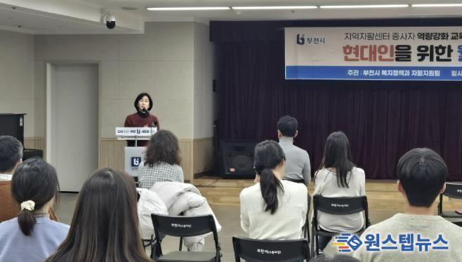 원스텝뉴스 이병희 기자 | 부천시는 지난 3일 부천시청 소통마당에서 지역자활센터 종사자 30여 명을 대상으로 ‘현대인을 위한 웰빙의 시작, 웰빙무브 교육’을 열었다. 이번 교육은 종사자들의 업무 스트레스를 줄이고, 건강한 생활습관 형성을 돕기 위해 마련됐다.