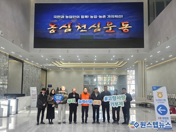 농협중앙회 경기본부(총괄본부장 엄범식)는 8일, 수원시 팔달구 경기본부 신청사 앞에서 「경기팜스테이협의회」운영위원들과 고향사랑기부제의 취지와 목적을 알리고 동참할 수 있는 계기를 만들고자 연말 맞이 대국민 홍보 캠페인을 실시 했다.