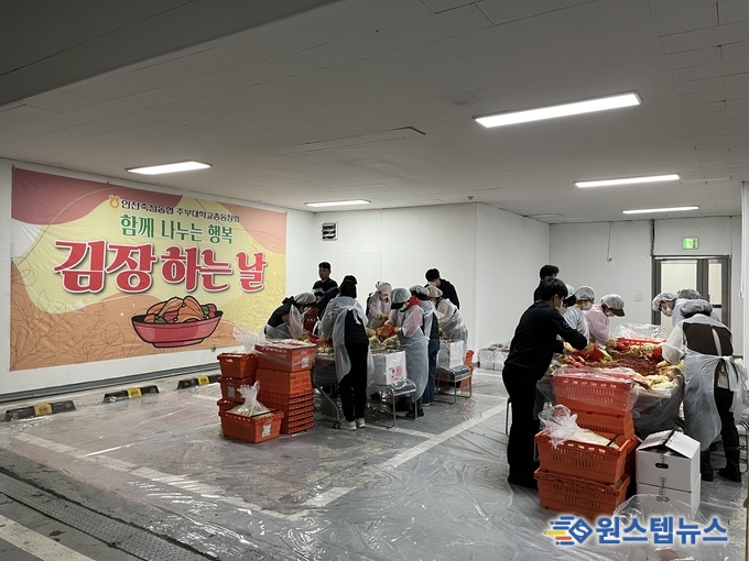 이번 행사는 인천축협 임직원, 인천축협 주부대학 총동창회, 경기농협이 함께 참여해 정성껏 김장김치 1,000kg를 만들었으며, 겨울철 어려움을 겪는 인천시 관내 취약계층에게 전달하여 따뜻한 겨울나기를 지원하고자 마련되었다.