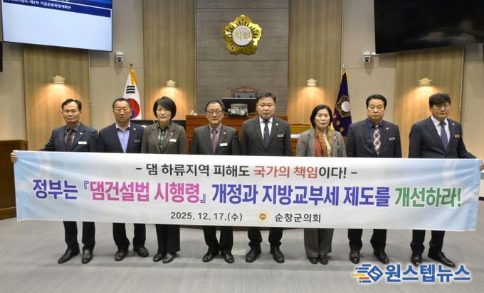 이에 순창군의회는 정부에 ▲'댐건설법 시행령'개정을 통한 댐 하류지역 지원대상 명확화 ▲사전방류 기준 강화와 방류정보 실시간 공유 등 댐 운영체계 개선 ▲지방교부세 산정 시 ‘댐 하류지역 위험부담 계수’신설을 통한 재정 지원 현실화를 강력히 촉구했다.