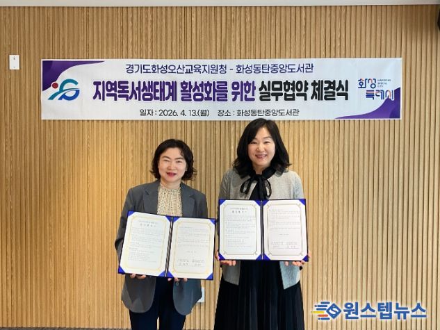 원스텝뉴스 천규영 기자 | 화성특례시 화성동탄중앙도서관은 화성오산교육지원청과 13일 화성동탄중앙도서관에서 독서문화진흥 및 상호 협력을 위한 실무협약을 체결했다.