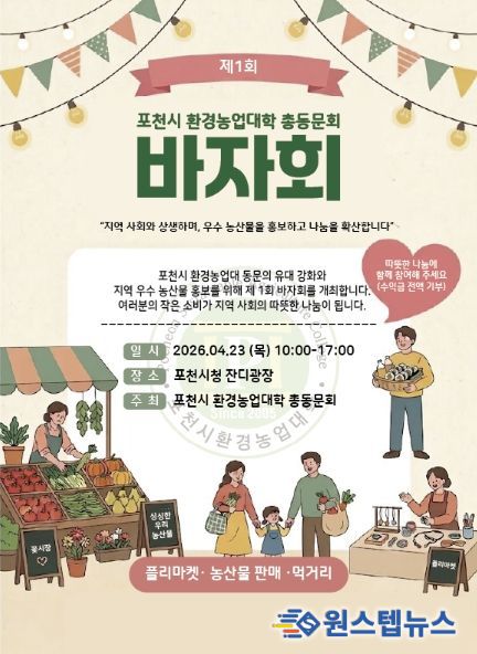 원스텝뉴스 천규영 기자 | 포천시 환경농업대학 총동문회가 오는 4월 23일, 지역사회와의 상생과 나눔을 실천하기 위한 ‘제1회 나눔 바자회’를 개최한다.