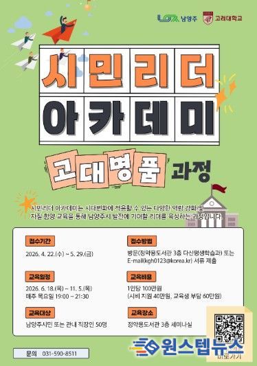 원스텝뉴스 천규영 기자 | 남양주시는 시민의 자치 역량 강화를 위해 ‘남양주시 시민리더 아카데미’ 제20기 수강생을 모집한다고 22일 밝혔다.