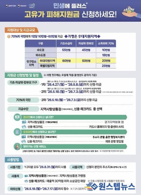 지원 대상 여부와 금액, 사용 기한 등은 ‘국민비서’ 알림서비스를 통해 미리 확인할 수 있다. 네이버앱, 카카오톡, 토스 등에서 알림을 신청하면 관련 정보를 사전에 안내받게 된다. 지급된 지원금은 8월 31일까지 주소지 내 지역사랑상품권 가맹점 등에서 사용할 수 있으며, 기한 내 미사용 잔액은 자동 소멸한다.