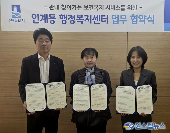 원스텝뉴스 이병희 기자 | 수원시 팔달구 인계동은 지난 24일, 지역사회보장협의체과 한전MCS(주) 경기지사 및 직할지점과 함께 취약계층 발굴과 지속적인 인적안전망 활동 참여를 위한 업무 협약을 체결했다.