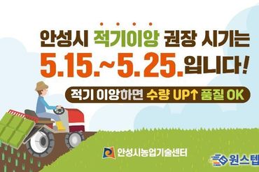 안성시, "고품질 안성쌀 생산의 시작은 품종별 적기 이앙부터"