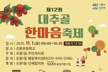 수원시 장안구 조원1동 주민자치회, 11월 1일 '제12회 대추골 한마음 축제' 개최