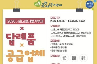 시흥시, 고향사랑기부제 답례품ㆍ공급업체 모집…지역 특색 살린 상품 발굴로 기부 활성화 기대