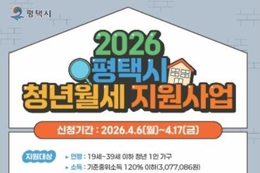 2026년 ‘평택시 청년 월세 지원’ 신규 대상자 모집