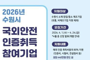 수원특례시, 중소제조기업 국외 안전인증 취득 지원한다
