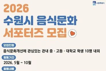 수원특례시, '음식문화 서포터즈' 활동할 청소년·대학생 모집