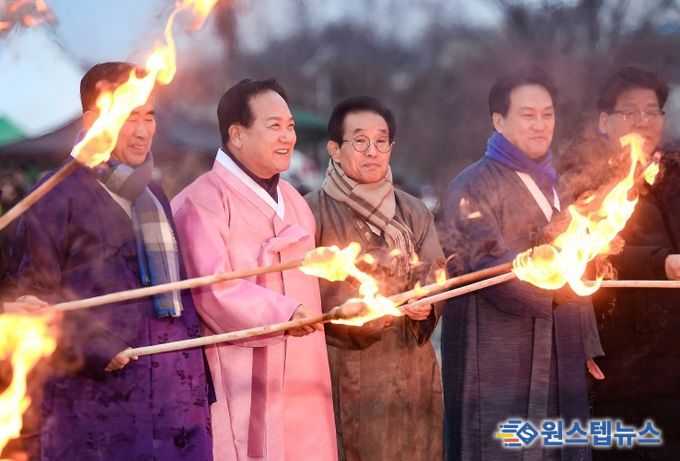 낮 동안 줄타기보존회의 줄타기 퍼포먼스, 경기민요 등 다양한 전통 문화예술 공연이 이어진 가운데 제기차기, 윷놀이, 연날리기 등 전래놀이와 오곡밥과 부럼을 체험할 수 있는 먹거리장터가 오후 6시까지 진행됐다.