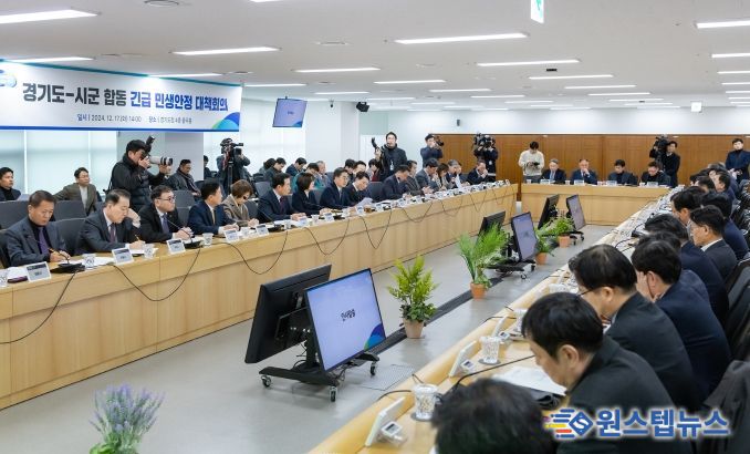 김동연 지사는 17일 도청에서 ‘경기도·시군 합동 긴급 민생안정 대책회의’를 개최했다. 이번 회의는 지난 16일 ‘도-공공기관 민생안정 긴급간부회의’에 이어 대통령 탄핵안 가결로 인한 국정 혼란 상황에서 민생과 행정 안정성을 확보하기 위해 마련됐다.