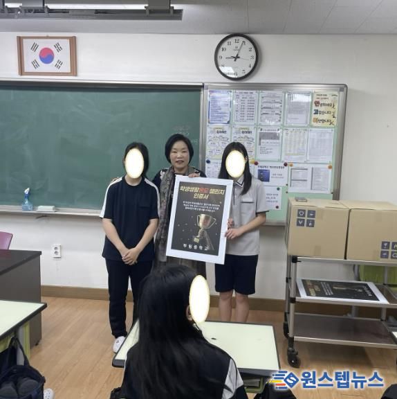 부림중학교 이정애교장선생님은 “작은 칭찬이 모여 교실의 분위기를 따뜻하게 만들고 있으며, 학생들이 자발적으로 자신의 생활을 돌아보며 책임감을 기르고 있다”라는 격려와 인증서를 학급에 전했다.