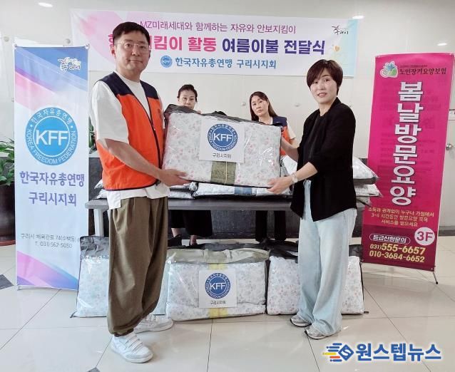 원스텝뉴스 이병희 기자 | 한국자유총연맹 구리시지회는 지난 17일 행복지킴이 활동으로 지역 내 취약계층에 여름 이불을 전달하며 지역사회에 따뜻한 나눔을 실천했다.