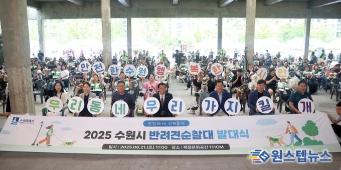 원스텝뉴스 이병희 기자 | 수원특례시의회 이재식 의장은 지난 21일, 복합문화공간 111CM에서 열린 ‘2025년 수원시 반려견 순찰대 발대식’에 참석해, 반려견 산책을 통한 시민 자율 참여 기반의 안전망 구축과 안전한 도시 조성에 뜻을 함께했다.
