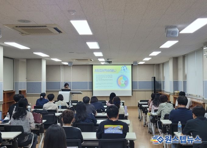 특히, 나산초 강재원 교사(초등 사례), 수현중 신주현 교사(중등 사례)가 직접 현장에서 적용한 사회정서학습 기반 수업을 공유하여, 교사들이 구체적인 수업 적용 방법을 배우고 서로의 경험을 나눌 수 있는 자리가 됐다.