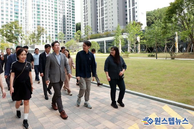 이 시장은 이날 이 아파트 1,2,3단지를 입주민들과 함께 둘러보고 난 뒤 입주민 50여 명과 입주자대표회의 관계자들과 간담회를 했다.