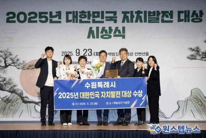 이재준 수원시장은 “이번 수상은 시민과 함께 이뤄낸 값진 성과”라며 “앞으로도 시민이 주인인 진정한 자치분권 도시, 대한민국을 선도하는 특례시로 발전해 나가겠다”고 밝혔다.