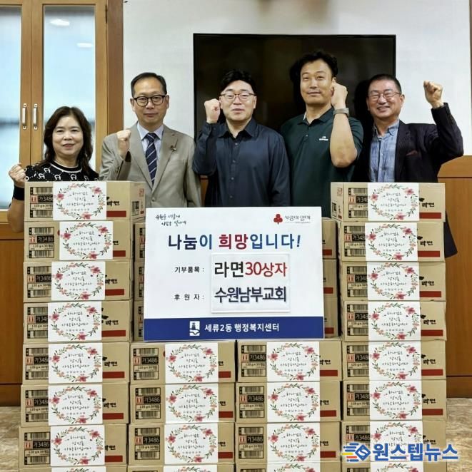 원스텝뉴스 이병희 기자 | 수원시 권선구 세류2동 소재 수원남부교회는 지난 23일, 지역 내 취약계층을 위해 라면 30상자를 세류2동 행정복지센터에 기부했다.