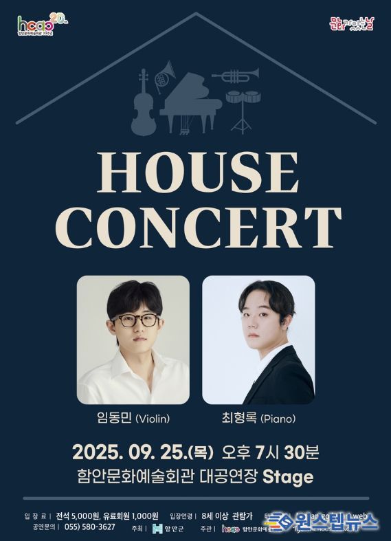 하우스콘서트는 2002년 서울에서 시작돼 전국으로 확산된 ‘연주자와 관객이 가까이 호흡하는 공연’으로, 함안문화예술회관은 2013년부터 본 공연을 도입해 지역민이 일상 속에서 최고 수준의 클래식 음악을 직접 접할 기회를 제공하고 있다.