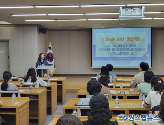 이번 돌봄학당은 노인 건강이해와 건강돌봄, 온동네건강돌봄학교 및 커뮤니티케어센터 사업 이해, 누구나돌봄사업 등 세 가지 주제로 1시간 30분 동안 진행됐다.