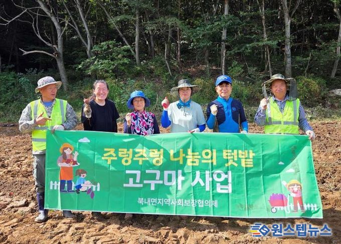 원스텝뉴스 이병희 기자 | 북내면지역사회보장협의체가 지난 23일, 올봄 정성껏 심었던 '나눔의 텃밭'에서 풍성한 고구마를 수확했다. 이번 수확 행사에는 협의체 위원들과 북내면행정복지센터 직원 등 10여 명이 참여해, 구슬땀을 흘리며 탐스럽게 영근 고구마를 캐내는 기쁨을 함께했다.