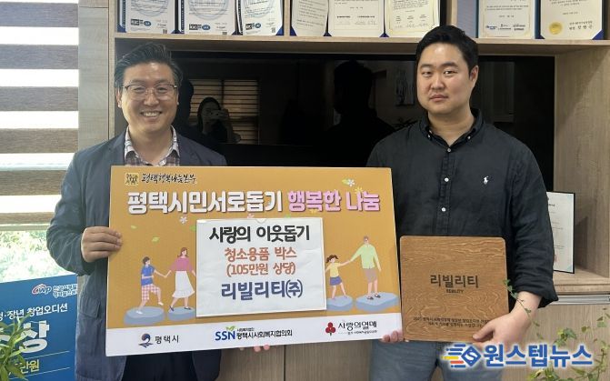 원스텝뉴스 이병희 기자 | 리빌리티㈜은 청소용품 꾸러미 40박스(105만원 상당)을 평택행복나눔본부로 전달했다.