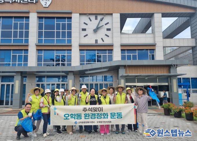 심무순 오학동 주민자치회장은 “명절을 앞두고 깨끗한 환경을 조성하기 위해 애써주신 주민자치위원 여러분께 감사드리며, 앞으로도 오학동 주민들의 편익과 문화생활 향상을 위해 지속적으로 노력하겠다. 한편, 오학동 주민자치회는 오는 9월 27일 주민총회를 통해 주민들과 직접 소통하는 시간을 마련할 계획이다. 총회와 더불어 ‘행복마당’, ‘패밀리시네마’ 등 온 가족이 함께 즐길 수 있는 다양한 문화행사도 함께 진행될 예정으로 많은 관심과 참여가 바란다.”라고 전했다.