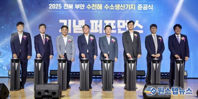 원스텝뉴스 이병희 기자 | 부안군은 24일 전북특별자치도 부안 신재생에너지단지에서 수전해 기반 그린수소 생산기지 준공식을 개최했다고 밝혔다.