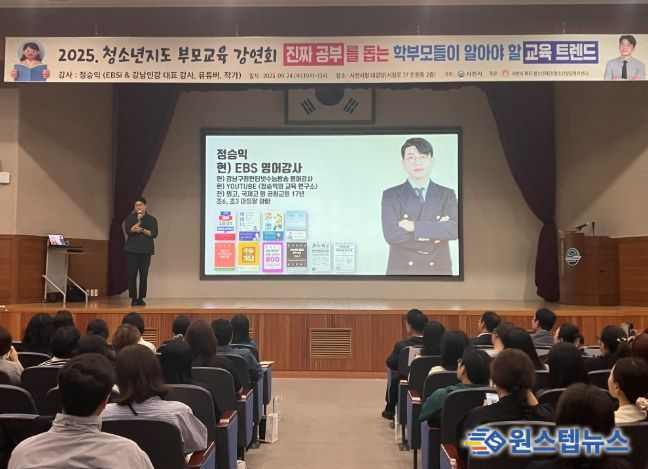이번 강연은 EBS 영어 대표 일타강사로 유명한 정승익 강사를 초청해 진행됐으며, ‘진짜 공부를 돕는 학부모들이 알아야 할 교육 트렌드’라는 주제로 학부모들의 큰 관심을 끌었다.