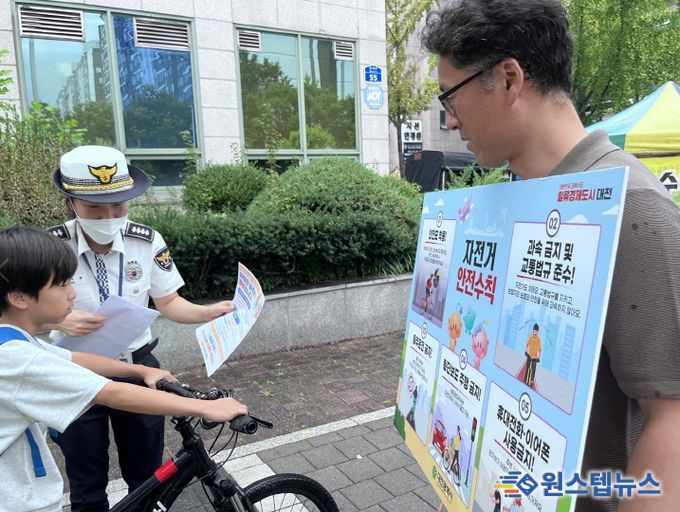 현장에서는 ▲픽시자전거 도로주행 금지 단속 ▲자전거 안전모 착용과 과속·음주운전 금지 계도 ▲보행자 무단횡단 금지 안내와 홍보물 배포가 진행됐다.