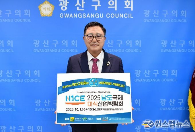 원스텝뉴스 이병희 기자 | 김명수 광주 광산구의회 의장이 24일 ‘2025 남도국제미식산업박람회’의 성공적인 개최를 기원하는 릴레이 응원 캠페인에 동참했다.