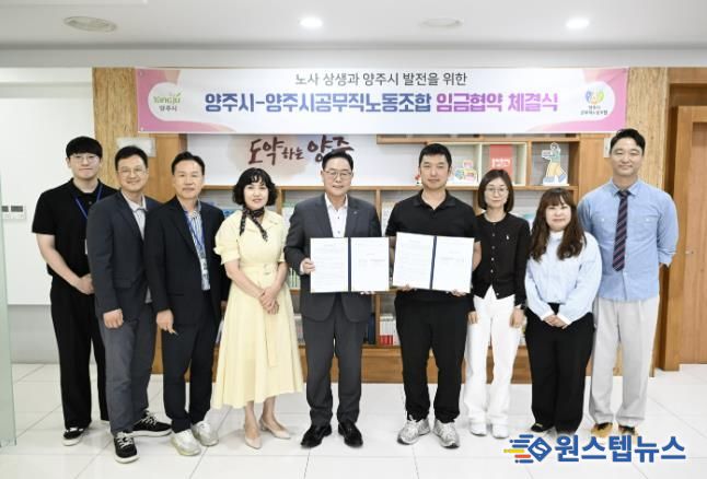 원스텝뉴스 이병희 기자 | 양주시가 최근 양주시공무직노동조합과 함께 2025년 공무직 임금협약 체결식을 갖고 상호 신뢰와 협력을 바탕으로 한 상생의 노사문화를 재확인했다.