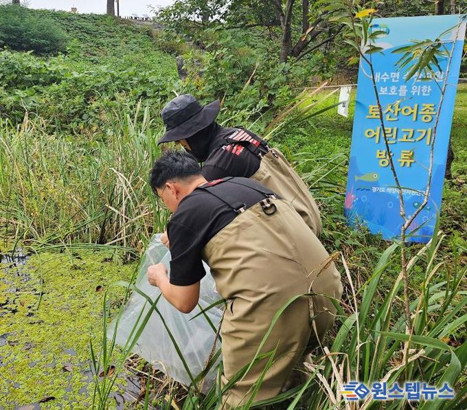 원스텝뉴스 이병희 기자 | 경기도해양수산자원연구소가 토종 민물고기 종 보존과 하천 생태계 복원을 위해 경기도 보호 어종인 버들붕어 치어 1천 마리를 9월 30일 광주시 경안천습지생태공원에 방류했다.