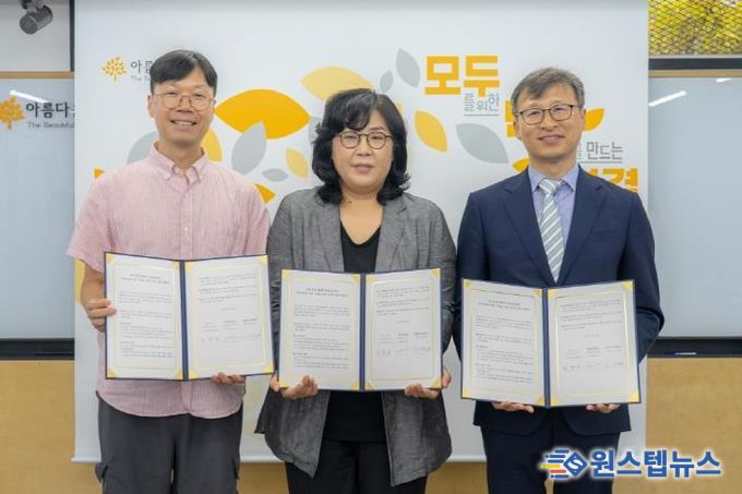 지난달 30일 서울 종로구 아름다운재단에서 열린 협약식에는 공정식 경기도 사회혁신경제국장, 김진아 아름다운재단 사무총장, 김정태 MYSC 대표가 참석했다.