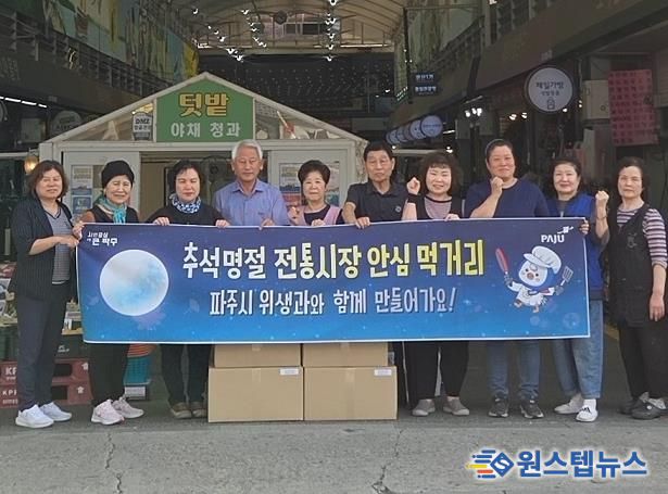 원스텝뉴스 이병희 기자 | 파주시는 지난 29일 관내 전통시장 7개소(금촌전통, 문화로, 명동로, 문산자유, 봉일천, 광탄경매, 적성) 내 식품취급업소 304개소를 대상으로 위생모, 앞치마 630여 개를 지원했다.