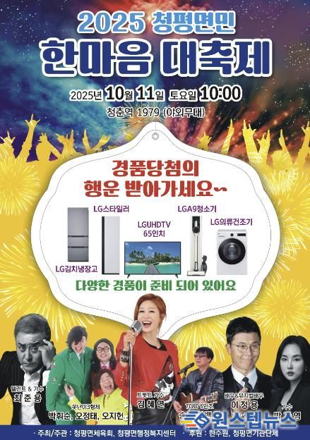 박성규 청평면장은 “올해 축제는 안전과 품격을 최우선으로 면민 누구나 즐겁게 참여하고, 지역 상권에도 온기가 도는 하루가 될 것”이라고 말했다.