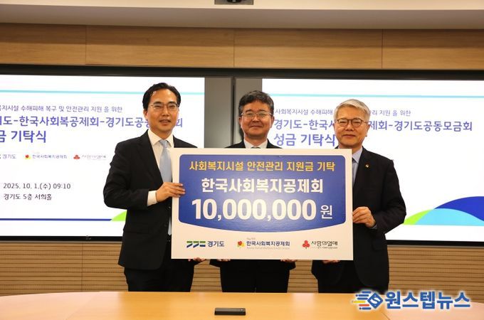 원스텝뉴스 이병희 기자 | 경기도는 1일 경기도청에서 한국사회복지공제회, 경기도공동모금회와 함께 ‘경기도 사회복지시설 안전관리 지원 성금 기탁식’을 개최했다.