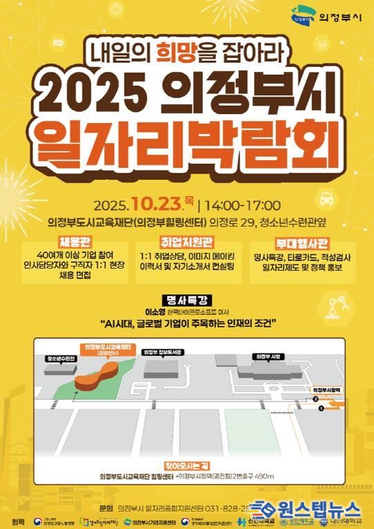 원스텝뉴스 천규영 기자 | 의정부시는 10월 23일 오후 2시 의정부도시교육재단 힐링센터(의정로 29, 청소년수련관 옆)에서 ‘2025 의정부시 일자리 박람회’를 개최한다.