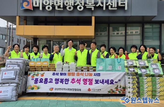 이날 행사는 미양면 지역사회보장협의체가 주최하고 이장단과 부녀회의 협조를 받아 공동으로 진행됐으며 청년 농부(챈들화방 이채연 / 썬즈 팜 김선영)의 농산물 지원(포도 10박스, 당근 20kg)과 협의체 마을복지사업(이불 지원)을 함께 추진하여 풍성하고 활기찬 명절맞이 행사가 펼쳐졌다.