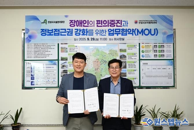 원스텝뉴스 이병희 기자 | 안성시시설관리공단은 지난 29일 오전11시 공단 2층 이사장실에서 안성시수어통역센터와 안성시 공영주차장을 이용하는 장애인의 편의증진과 정보접근권 보장을 위한 업무협약을 체결했다.