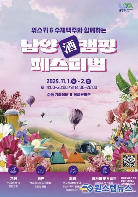 시 관계자는 “남양주의 자연 속에서 캠핑과 공연, 먹거리, 지역 술까지 다양하게 즐길 수 있는 가을 축제를 마련했다”며 “특히 지역에서 만든 술을 직접 체험해볼 수 있는 이번 행사가 시민들에게 색다른 즐거움이 되길 바란다”고 말했다